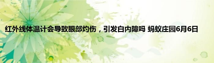 红外线体温计会导致眼部灼伤,引发白内障?很多人有点担心红外新体温计的安群问题,这是支付宝中蚂蚁庄园小课堂6月6日的问题之一,答对即可在领饲料中获得一份180g小鸡宝宝饲料作为奖励。那么接下来就让我们一起了解一下红外线体温计会导致眼部灼伤,引发白内障吧。