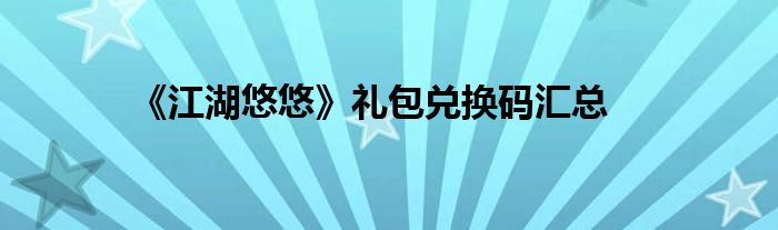 江湖悠悠礼包兑换码汇总