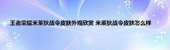 王者荣耀米莱狄战令皮肤怎么样