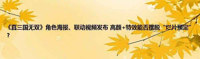 感谢你在百忙之中抽出时间阅读《真三国无双》角色海报、联动视频公布 高颜+特效能否摆脱“烂片预定”?这篇文章。你觉得今天《真三国无双》角色海报、联动视频公布 高颜+特效能否摆脱“烂片预定”?话题怎么样?关于《真三国无双》角色海报、联动视频公布 高颜+特效能否摆脱“烂片预定”?这篇文章的任何评论都可以告诉我。你的每一个建议都是对小编辑的肯定和鼓舞。小编明天会继续给你带来更多的好内容。我希翼你不要错过。感谢支持哟!
