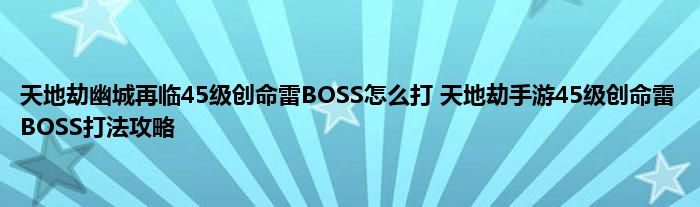 乾坤劫幽城再临45级创命雷BOSS打法是什么?乾坤劫幽城再临45级创命雷BOSS怎么打?接下来和蚕豆君小编一起来看看乾坤劫幽城再临45级创命雷BOSS打法攻略吧!
