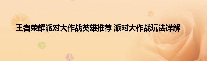 王者荣耀派对大作战英雄推举 派对大作战玩法详解