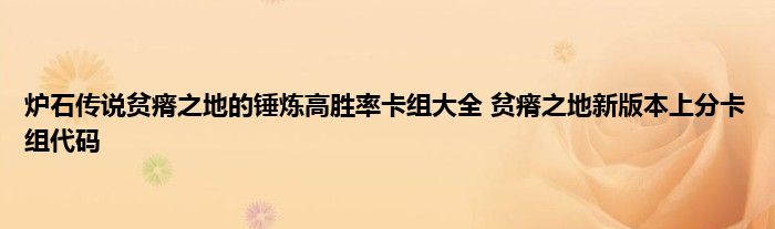 炉石传说贫瘠之地的锤炼高胜率卡组是什么?炉石传说贫瘠之地新卡包已经正式上线了,这次的新卡包上线以后自然也是有不少的新卡组浮现。目前什么卡组比较多连胜呢?下面就来看看具体的3月31日新版本高胜率卡组推举吧。