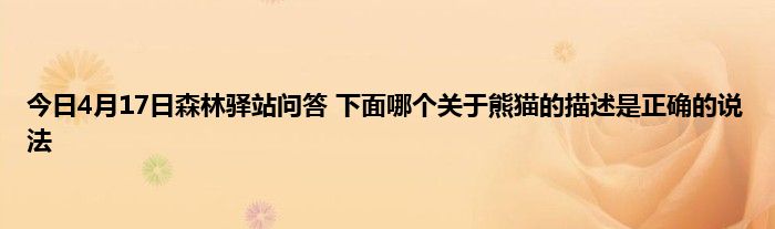 今天来聊聊关于今日4月17日森林驿站问答 下面哪个关于熊猫的描述是正确的说法的文章,游戏是很多人的选择,但是游戏玩多了也会身心疲惫,现在就为大家来简单介绍下今日4月17日森林驿站问答 下面哪个关于熊猫的描述是正确的说法,希望对各位小伙伴们有所帮助。