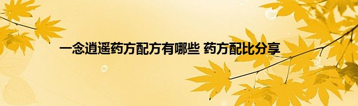 以上就是关于一念逍遥药方配比大全的分享了,希翼对大家有所帮助。