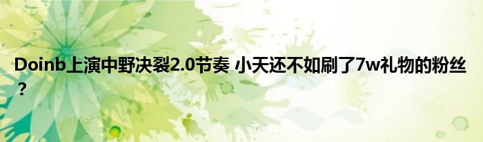 因此不少人觉得Doinb这样完全是只向钱看,他和小天作为共同夺冠的队友,还比不上7w的粉丝吗?面对这样的疑问,Doinb在直播中,却根本没有认为自己错了的意思,反而是觉得:因为我有热度,所以别人才会带我节奏,我被黑的还少了吗?