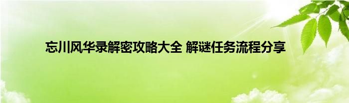 上面就是忘川风华录解密攻略大全以及解谜任务流程分享了,希望这个攻略能够给玩家们带来帮助。