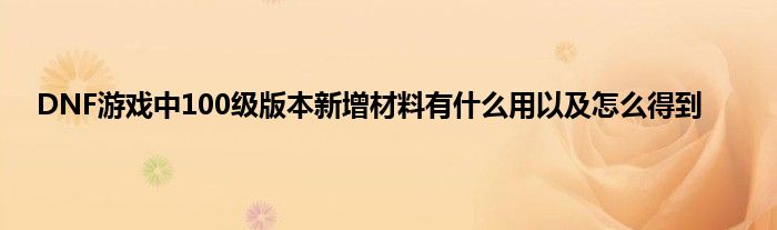今天来聊聊关于DNF游戏中100级版本新增材料有什么用以及怎么得到的文章,游戏是很多人的选择,但是游戏玩多了也会身心疲惫,现在就为大家来简单介绍下DNF游戏中100级版本新增材料有什么用以及怎么得到,希望对各位小伙伴们有所帮助。