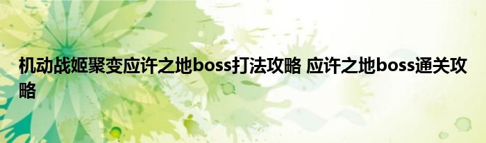 机动战姬聚变中有一个应许之地,其中有一个boss比较难打,不少玩家不清晰boss技能机制,虽然有点困难,但是知道怎么打就不难了,小编整理和收集了有关攻略,下面就来尾随小编一起来看看详细的攻略内容吧,希翼能帮到大家。