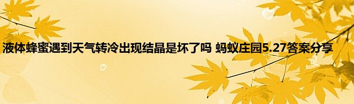 大家好,今天是5月27日,蚂蚁庄园今天的问题是买回来的液体蜂蜜,遇到天气转冷容易浮现结晶,是坏了吗?那么问题的答案是什么呢,答对的可以获得小鸡饲料用来喂养小鸡,小编收集和整理了相关答案以及解析,下面一起来看看吧!