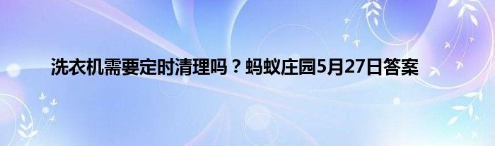洗衣机需要定时清理吗?蚂蚁庄园每天都会问玩家一些问题,答对了的话就能领取饲料给小鸡喂食。今天的答案可能还是有很多的玩家不清晰的,5月27日的最新问题发布,以下是详细答案,一起来看看吧。