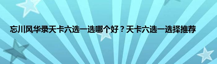 忘川风华录天卡六选一选哪个好?天卡是忘川风华录新手第一次进入游戏后游戏送的一次开局自选机会,一共六个初始角色可以选,那么选哪个比较好呢,每个角色有各自的特点和属性,下面就来跟着小编一起了解一下哪个选择是最好的最有性价比的。
