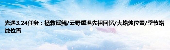 光遇游戏每天都会发布四个任务让玩家们去完成,完成后就会有相应的奖励。光遇3月24日任务不知道怎么做,不少人都在里面探索大蜡烛的位置,还有相关的散落位置在哪,不知不觉就很容易错过的,想要去里面找到的就看看蚕豆君给大家整理的详细攻略吧。