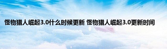 怪物猎人崛起3.0更新时间
