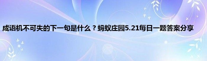 大家好,今天是5月21日,今天蚂蚁庄园问题已经出来了,其中一个和成语有关,形容做事不要错过时机,有关这个形容的有一个非常有名的成语,不过很多人经常弄错,那么机不可失下一句是什么呢,下面就来跟着小编一起来看看正确答案。