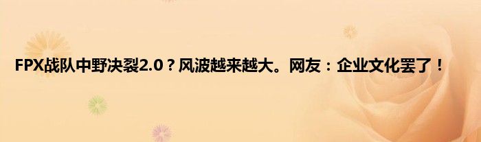 感谢你在百忙之中抽出时间阅读FPX战队中野决裂2.0?风波越来越大。网友:企业文化罢了!这篇文章。你觉得今天FPX战队中野决裂2.0?风波越来越大。网友:企业文化罢了!话题怎么样?关于FPX战队中野决裂2.0?风波越来越大。网友:企业文化罢了!这篇文章的任何评论都可以告诉我。你的每一个建议都是对小编辑的肯定和鼓励。小编明天会继续给你带来更多的好内容。我希望你不要错过。感谢支持哟!