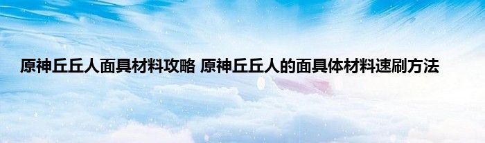 原神游戏中的丘丘人的面具怎么获得?原神最近很需要丘丘人的面具材料进行突破,这个材料不少玩家都没有累计,因此不太清晰具体怎么获得比较快。下面就带来了具体的猎取攻略,希翼大家喜欢。