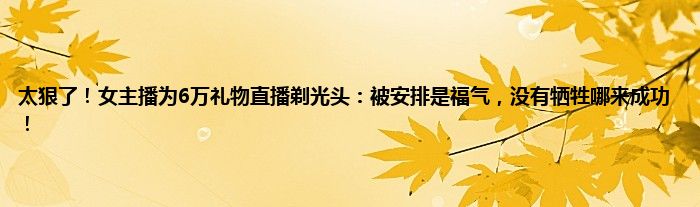 感谢你在百忙之中抽出时间阅读太狠了!女主播为6万礼物直播剃光头:被安排是福气,没有牺牲哪来成功!这篇文章。你觉得今天太狠了!女主播为6万礼物直播剃光头:被安排是福气,没有牺牲哪来成功!话题怎么样?关于太狠了!女主播为6万礼物直播剃光头:被安排是福气,没有牺牲哪来成功!这篇文章的任何评论都可以告诉我。你的每一个建议都是对小编辑的肯定和鼓舞。小编明天会继续给你带来更多的好内容。我希翼你不要错过。感谢支持哟!