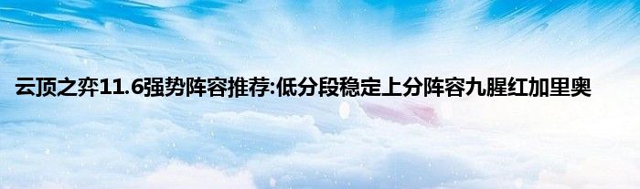 随着云顶之弈11.6版本上线,新版本上分阵容成为不少朋友们关注的焦点,对于低分段玩家来说,什么阵容上分最稳定?这里就为大家推荐一个11.6版本强势上分阵容——九猩红加里奥,以及其他阵容推荐排行。