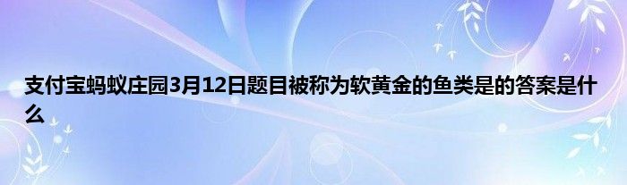 以上就是支付宝蚂蚁庄园3月12日题目被称为软黄金的鱼类是的答案是什么的推荐,相信通过支付宝蚂蚁庄园3月12日题目被称为软黄金的鱼类是的答案是什么这篇文章能帮到你,也欢迎对游戏很感兴趣小伙伴们一起来探讨。