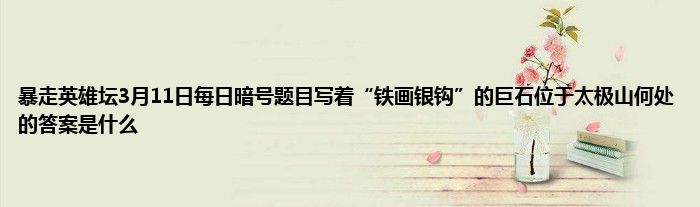 今天弟哥来聊聊一篇关于暴走英雄坛3月11日每日暗号题目写着“铁画银钩”的巨石位于太极山何处的答案是什么的文章,游戏是很多人的选择,但是游戏玩多了也会身心疲惫,现在就为大家来简单介绍下暴走英雄坛3月11日每日暗号题目写着“铁画银钩”的巨石位于太极山何处的答案是什么,希望对各位小伙伴们有所帮助。