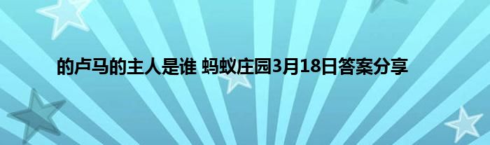 蚂蚁庄园小课堂当中每天都会给玩家带来一些新的题目供你来回答,有些题目对于玩家来说是有一定难度的,3月18日的最新问题就是的卢马的主人是谁?可能一些玩家还不知道这道题目的答案是什么,那下面就让小编给玩家带来小课堂3月18日答案的介绍,希望能给玩家带来帮助。