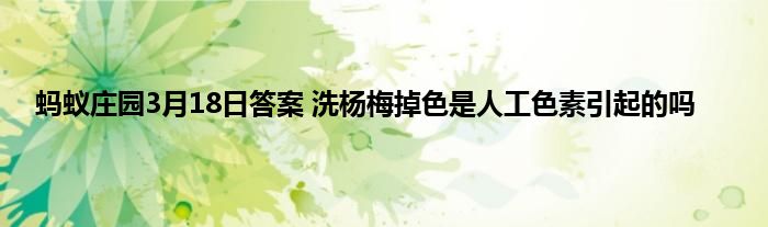 今天蚂蚁庄园3月18日小鸡宝宝小课堂的问题大家都答对了吗?有很多小伙伴表示不太清楚【清洗杨梅时发现杨梅掉色,这一定是添加人工色素引起的吗?】的答案。赶快和小编一起来get正确答案,领取饲料喂养小鸡宝宝吧~