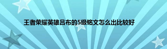 今天来聊聊关于王者荣耀英雄吕布的5级铭文怎么出比较好的文章,游戏是很多人的选择,但是游戏玩多了也会身心疲惫,现在就为大家来简单介绍下王者荣耀英雄吕布的5级铭文怎么出比较好,希望对各位小伙伴们有所帮助。