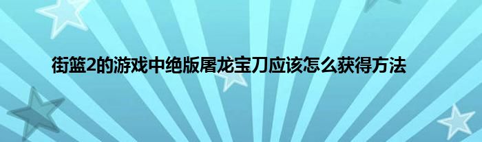 今天弟哥来聊聊一篇关于街篮2的游戏中绝版屠龙宝刀应该怎么获得方法的文章,游戏是很多人的选择,但是游戏玩多了也会身心疲惫,现在就为大家来简单介绍下街篮2的游戏中绝版屠龙宝刀应该怎么获得方法,希望对各位小伙伴们有所帮助。