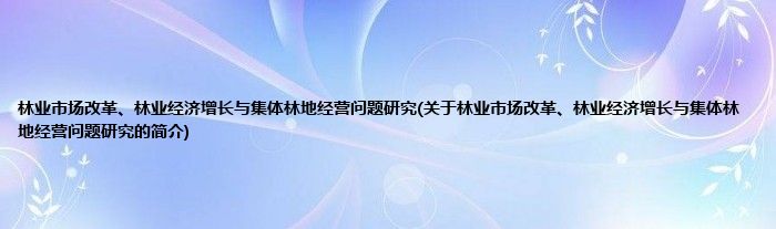 本文关于林业市场改革、林业经济增长与集体林地经营问题研究的简介就讲解完毕,希望对大家有所帮助。