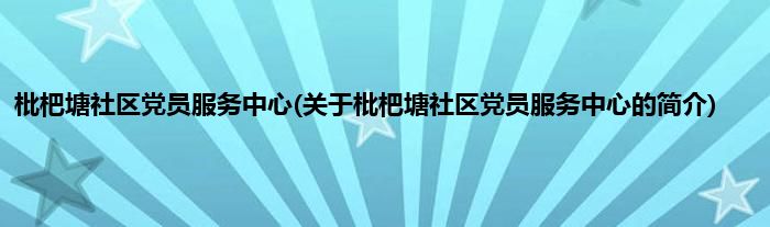 本文关于枇杷塘社区党员服务中心的简介就讲解完毕,希望对大家有所帮助。