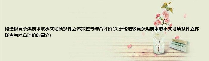 大家好,构造极复杂煤炭采取水文地质条件立体探查与综合评价,关于构造极复杂煤炭采取水文地质条件立体探查与综合评价的简介很多人还不知道,现在让我们一起来看看吧!