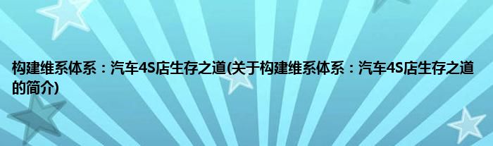 大家好,构建维系体系:汽车4S店生存之道,关于构建维系体系:汽车4S店生存之道的简介很多人还不知道,现在让我们一起来看看吧!