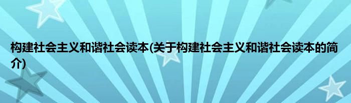 大家好,构建社会主义和谐社会读本,关于构建社会主义和谐社会读本的简介很多人还不知道,现在让我们一起来看看吧!