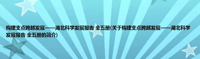 本文关于构建支点跨越发展——湖北科学发展报告 全五册的简介就讲解完毕,希望对大家有所帮助。