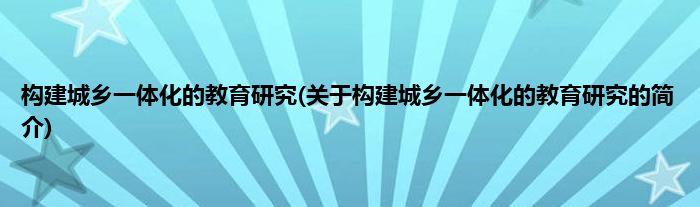构建城乡一体化的教育研究(关于构建城乡一体化的教育研究的简介)