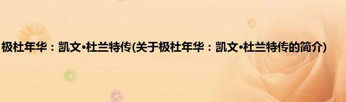 1、 《极杜年华:凯文·杜兰特传》是2014年11月1日世界知识出版社出版的图书。