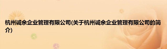 本文关于杭州诚余企业管理有限公司的简介就讲解完毕,希望对大家有所帮助。