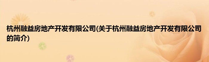 本文关于杭州融益房地产开发有限公司的简介就讲解完毕,希望对大家有所帮助。