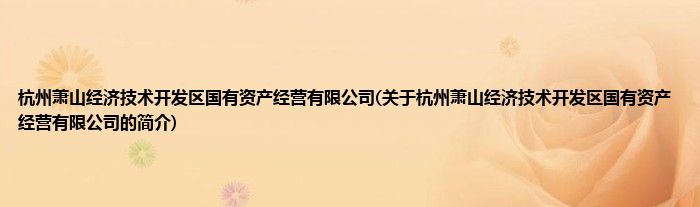 大家好,杭州萧山经济技术开发区国有资产经营有限公司,关于杭州萧山经济技术开发区国有资产经营有限公司的简介很多人还不知道,现在让我们一起来看看吧!