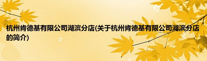 杭州肯德基有限公司湖滨分店(关于杭州肯德基有限公司湖滨分店的简介)