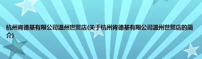 杭州肯德基有限公司温州世贸店(关于杭州肯德基有限公司温州世贸店的简介)