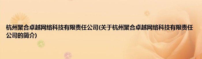 本文关于杭州聚合卓越网络科技有限责任公司的简介就讲解完毕,希望对大家有所帮助。
