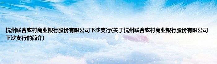 杭州联合农村商业银行股份有限公司下沙支行(关于杭州联合农村商业银行股份有限公司下沙支行的简介)