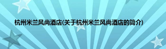 本文关于杭州米兰风尚酒店的简介就讲解完毕,希望对大家有所帮助。