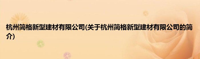 本文关于杭州简格新型建材有限公司的简介就讲解完毕,希望对大家有所帮助。