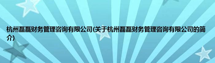 本文关于杭州磊磊财务管理咨询有限公司的简介就讲解完毕,希望对大家有所帮助。