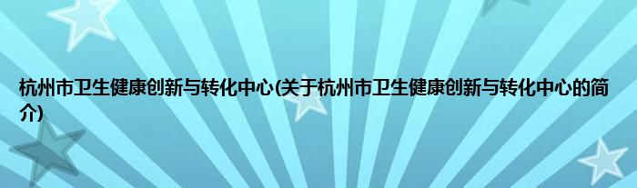 杭州市卫生健康创新与转化中心(关于杭州市卫生健康创新与转化中心的简介)