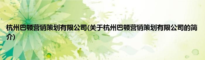 本文关于杭州巴顿营销策划有限公司的简介就讲解完毕,希望对大家有所帮助。