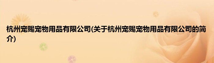 本文关于杭州宠赐宠物用品有限公司的简介就讲解完毕,希望对大家有所帮助。